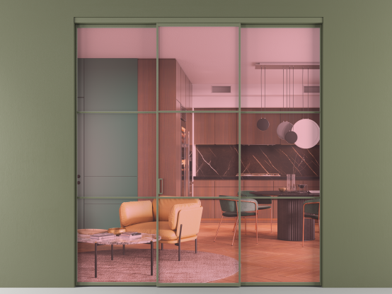 Алюминиевые перегородки имеют единый профиль с алюминиевыми дверьми и легко сочетаются в одном пространстве, не перегружая его. Также их можно комбинировать в интерьере с полотнами из нашего стандартного ассортимента. Помимо этого, система алюминиевых перегородок и дверей координируется со стеновыми панелями Волховец.