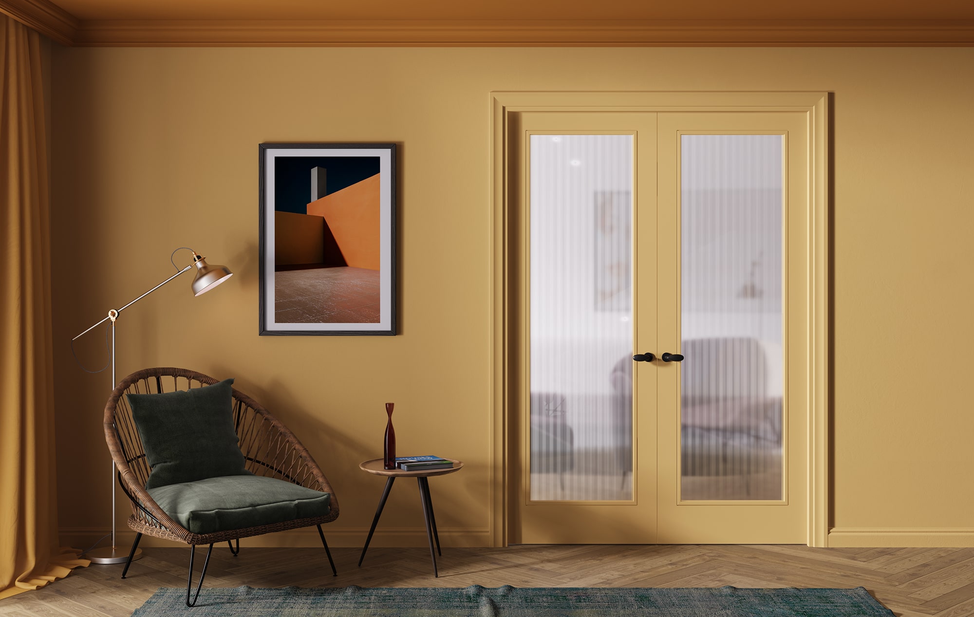 Дверь межкомнатная 6111 Пастельно-жёлтый RAL 1034. Цвет RAL Пастельно-жёлтый RAL 1034. Материал Массив дуба эмаль. Коллекция Эго. Картинка.