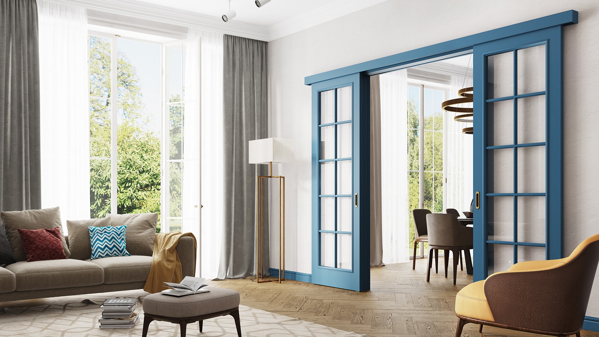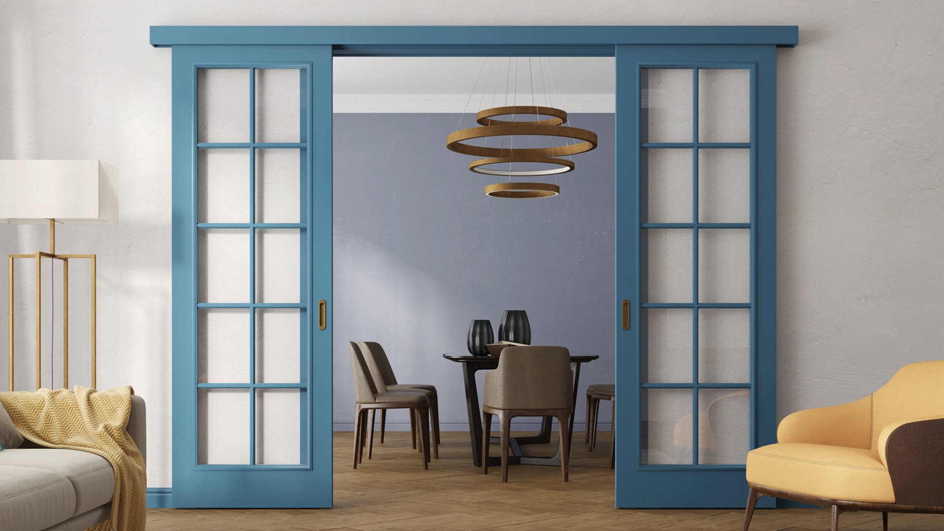Идеальное решение для экономии пространства, когда нет места для распахивания двери и необходимо поставить мебель вплотную к проему, с одной стороны.