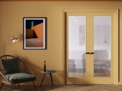 Дверь межкомнатная 6111 Пастельно-жёлтый RAL 1034. Цвет RAL Пастельно-жёлтый RAL 1034. Материал Массив дуба эмаль. Коллекция Эго. Картинка.